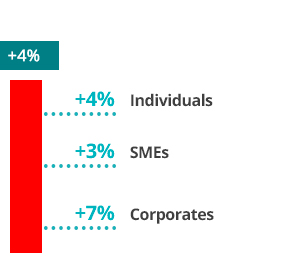 - Loans rose 4% year-on-year (excluding the exchange rate impact), with growth in eight of the 10 core countries, particularly in developing markets (+13%).