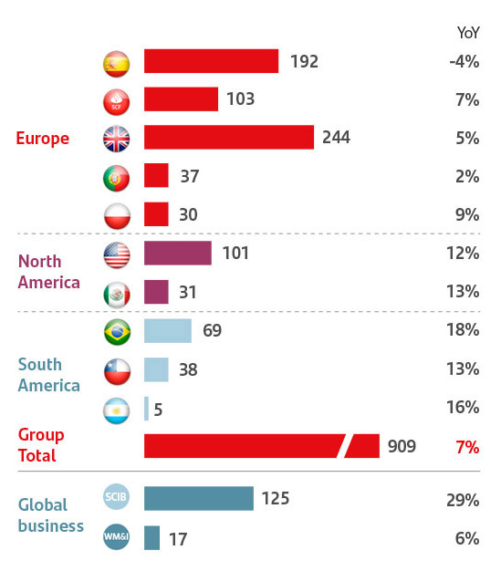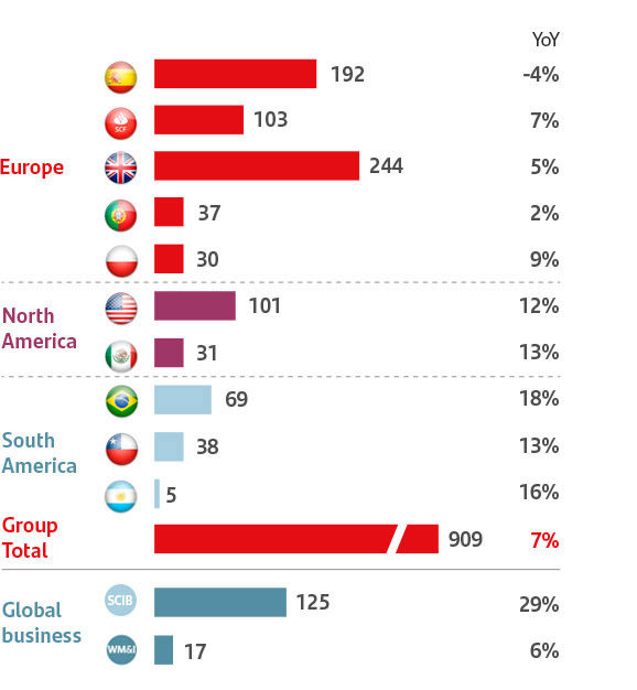 Europe includes Rest of Europe (mainly SCIB) with loans: EUR 47 bn (+37% YoY).