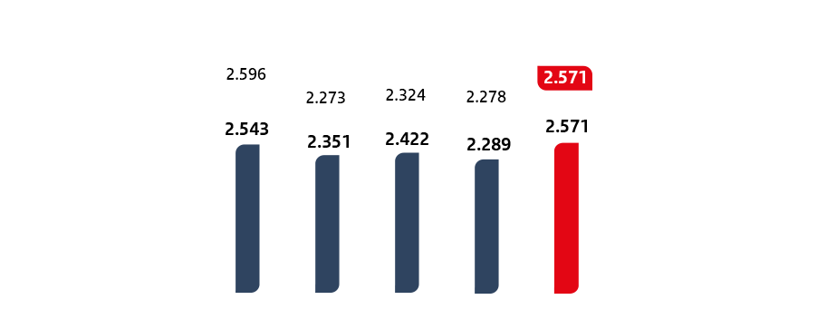 Beneficio atribuido al Grupo | 2.571 | 1,1 | (1,0) |